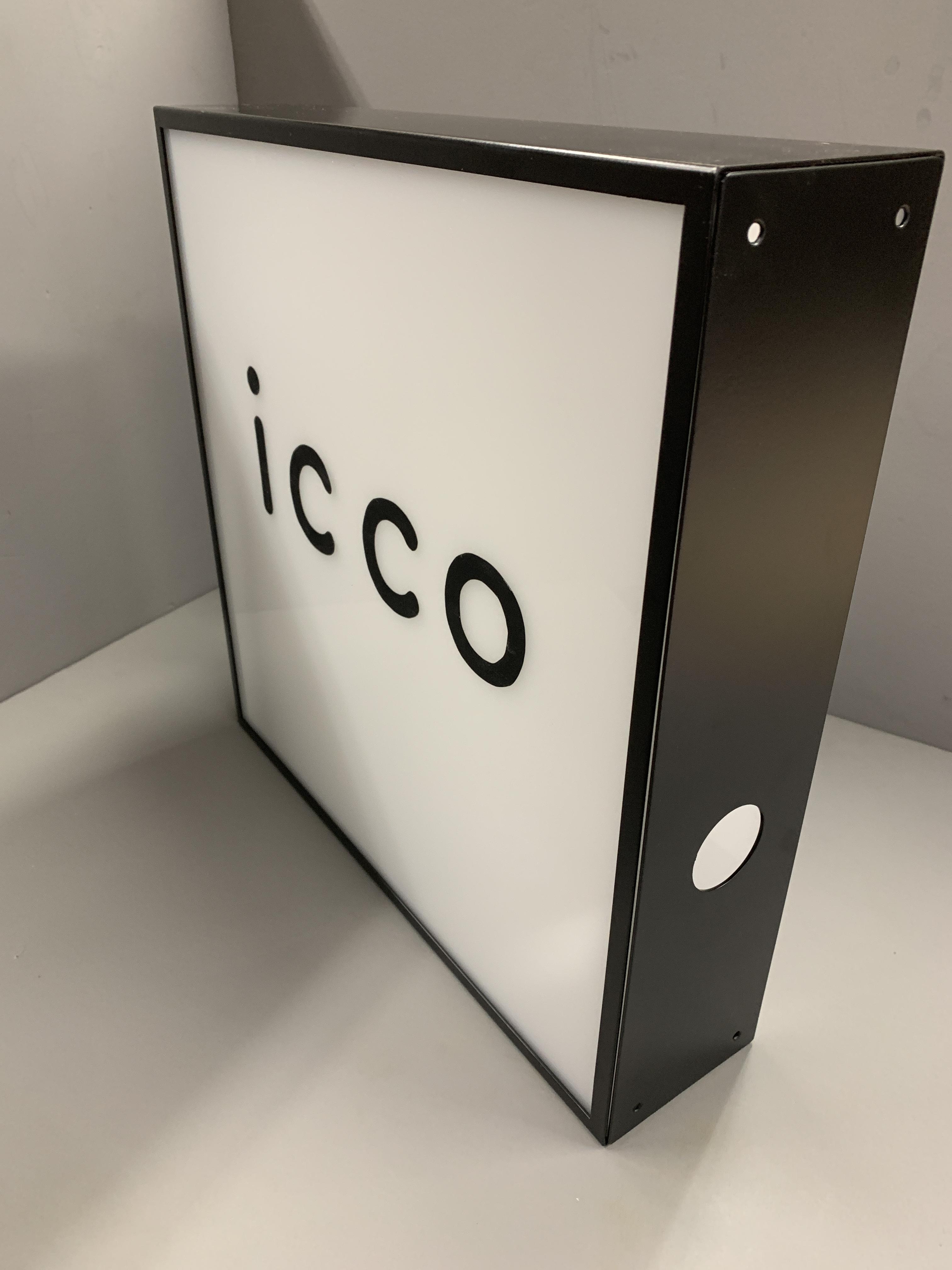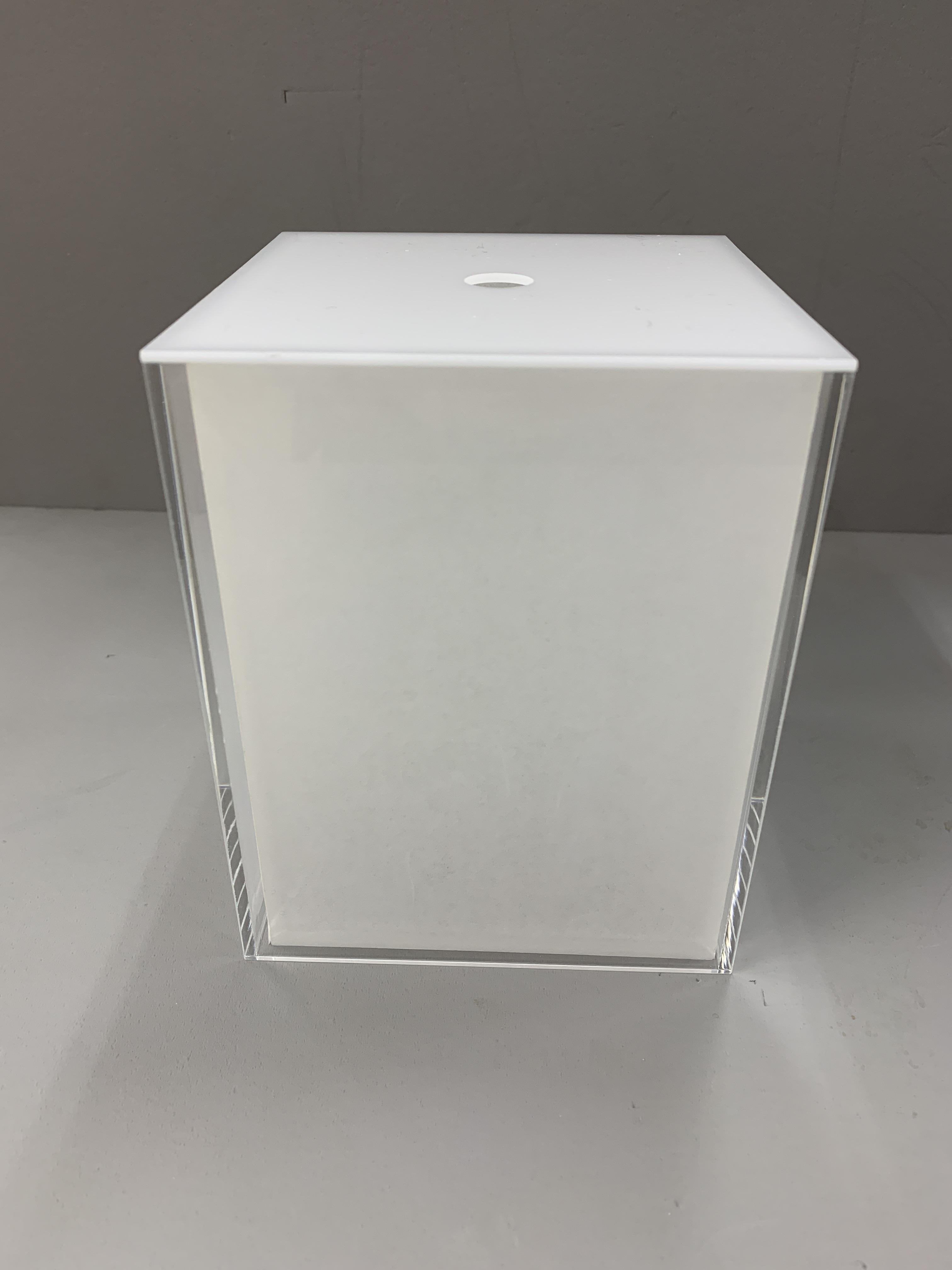 透明アクリル箱にワーロン0.25tを貼り付け、外周に透明箱を被せた行灯です。